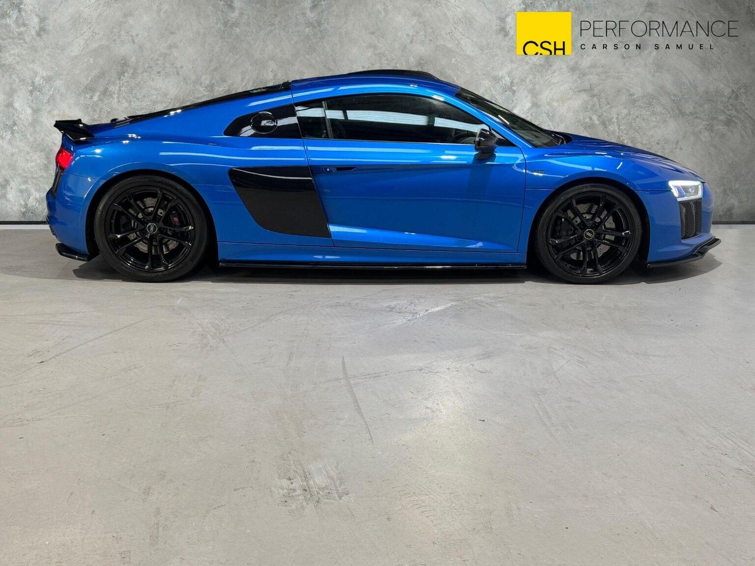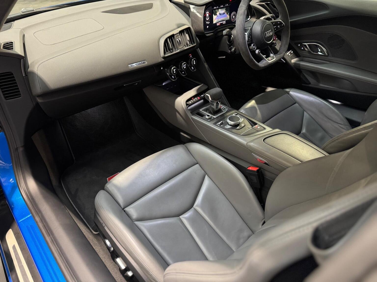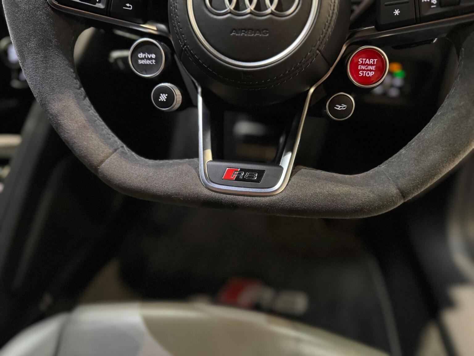 19in Alloy Wheels - 5-Arm V-Spoke Design, ABS - Anti-Lock Braking System, AMI - Audi Music Interface, ASF - Audi Space Frame, ASR - Anti Slip Regulation, AUX-IN Socket, Advanced Key, Airbags - Driver, Airbags - Front Passenger, Airbags - Front Side System, Airbags - Head System, Anti Theft Locking Wheel Bolts, Anti-Theft Alarm, Audi Connect, Audi Drive Select, Audi Parking System Plus, Audi R8 Driving Experience - Initial Owner Only, Audi Sound System, Audi Virtual Cockpit - 12.3in High Resolution LCD Display, Auto-Dimming Rear-View Mirror, Automatic Wipers with Rain Sensor, Body Coloured Door Mirrors, Brake Calipers - Gloss Black, CD Player, Car Jack, Cloth Headlining, DAB Digital Radio, DVD Player, Deluxe 1-Zone Climate Control, Door Mirrors - Built-in LED Side Indicators, Door Mirrors - Heated-Electrically Adjustable-Folding, Door Mirrors - Kerb View Function, Door Sill Trims with Aluminium Inlays and R8 Logo on the Door Sills, EDL - Electronic Differential Lock, ESC - Electronic Stabilisation Control, Electric Windows - Front, Electrically Adjustable Front Seats, Electromechanical Power Steering, Entrance Lighting, Exhaust Tailpipe - Dual-Branch - Trapezoidal - Left and Right Chrome Plated, First Aid Kit, Floor Mats, Front Passenger Airbag Deactivation Switch, Front Reading Lights, Headlights - Light Sensor, Heat Insulating Glass, Heated Front Seats, ISOFIX Child Seat Mounting for Front Passenger, Immobiliser, Inlays - Anthracite Anodised Paint Finish, Integrated Head Restraints, Interior Light Package, LED Daytime Running Lights, LED Headlights, LED Indicators, LED Rear Lights, Light and Rain Sensor Package, Lighting - Door Pockets/Footwells/Inside Door Handles, Lighting - Engine Compartment, Luggage Compartment - Lighting, MMI Navigation Plus including MMI Touch, MMI Touch, Mobile Telephone Preparation - Bluetooth Interface, Parking Sensors - Front, R8 Gear Selector Lever in Aluminium Look, R8 Sport Suspension, Radiator Grille - Single Frame - V10 Coupe with Honeycomb Design in Matt Anthracite Grey and with One-Piece Trim Frame, Rear Parking Sensors, SD Card Reader x2, Seat Belt Reminder, Seats - Electrically Adjustable Forward-Backwards Postitioning - Including Backrest Angle, Seats - Front Electric Height Adjustment, Seats - Front Pneumatic Lumbar Support, Seats - R8 Sport Seats, Sideblades - Ice Silver Metallic, Spoiler - Retractable, Steering Wheel - 3-Spoke Leather R8 with 2 Operating Satellites, Steering Wheel - Leather, Steering Wheel - Multi-function, Tool Kit, Tracking Preparation, Tyre Pressure Loss Indicator, Tyre Repair Kit, USB Connection x2, Voice Control, Warning Triangle