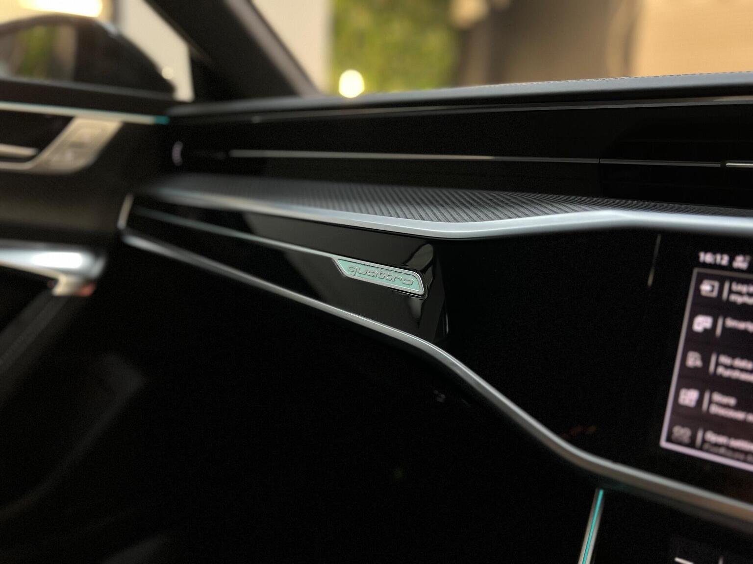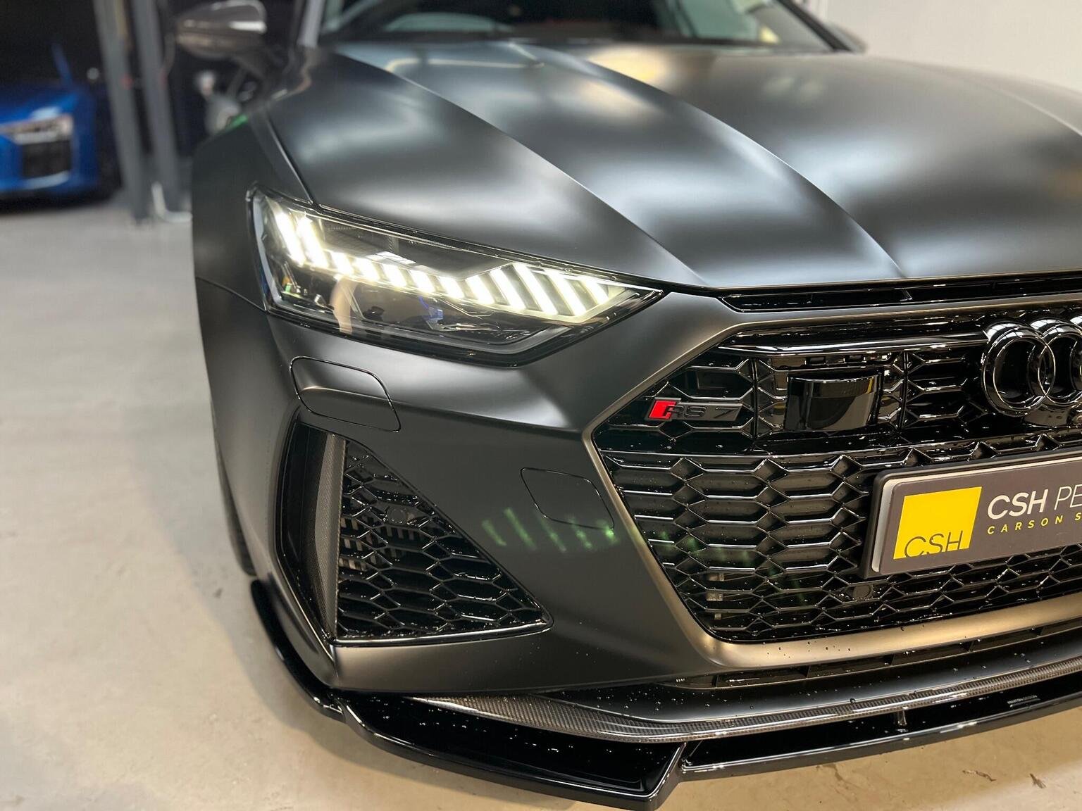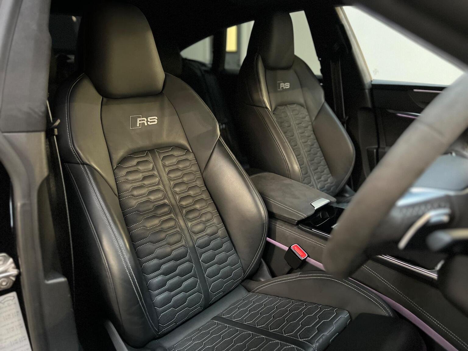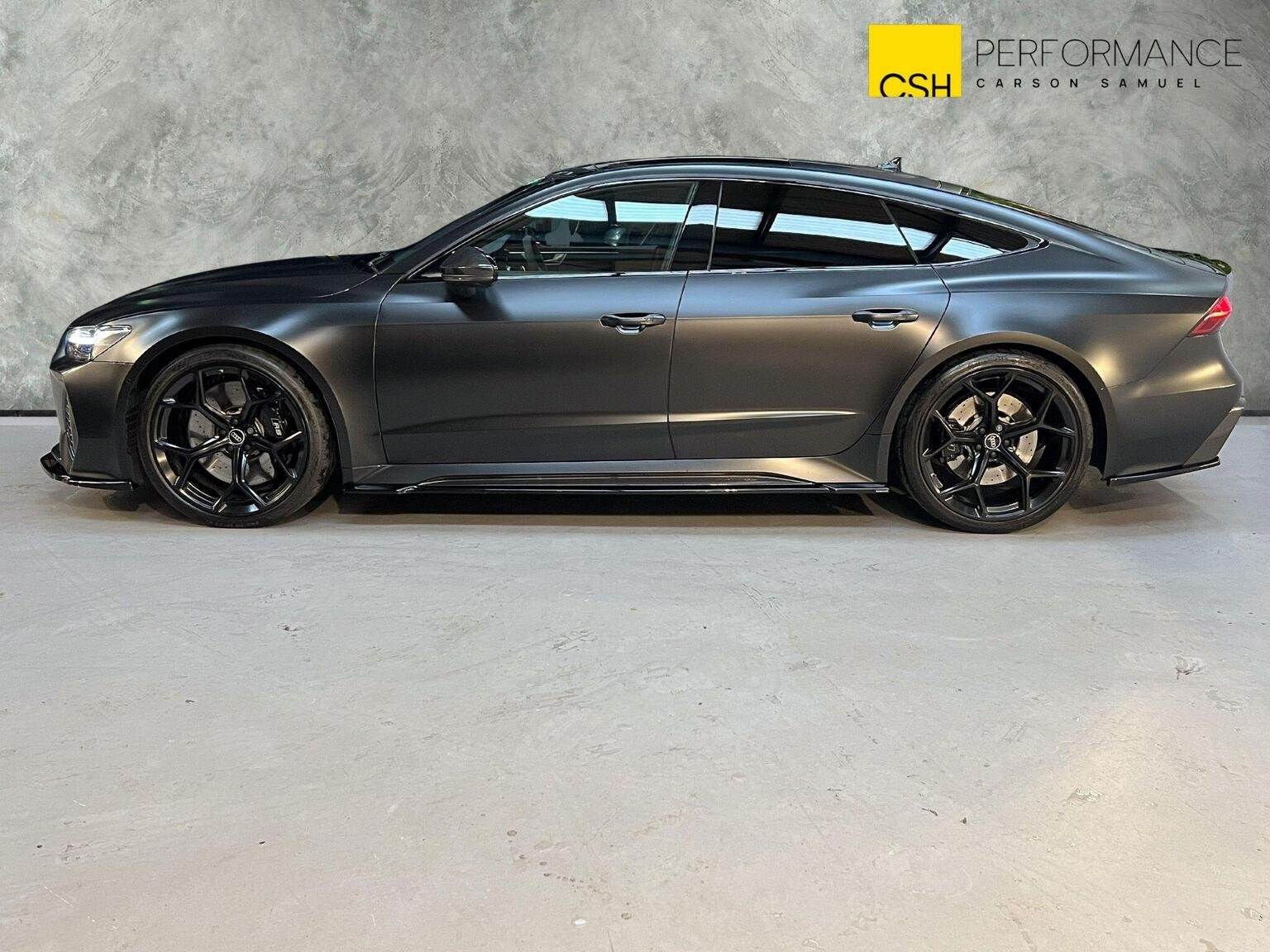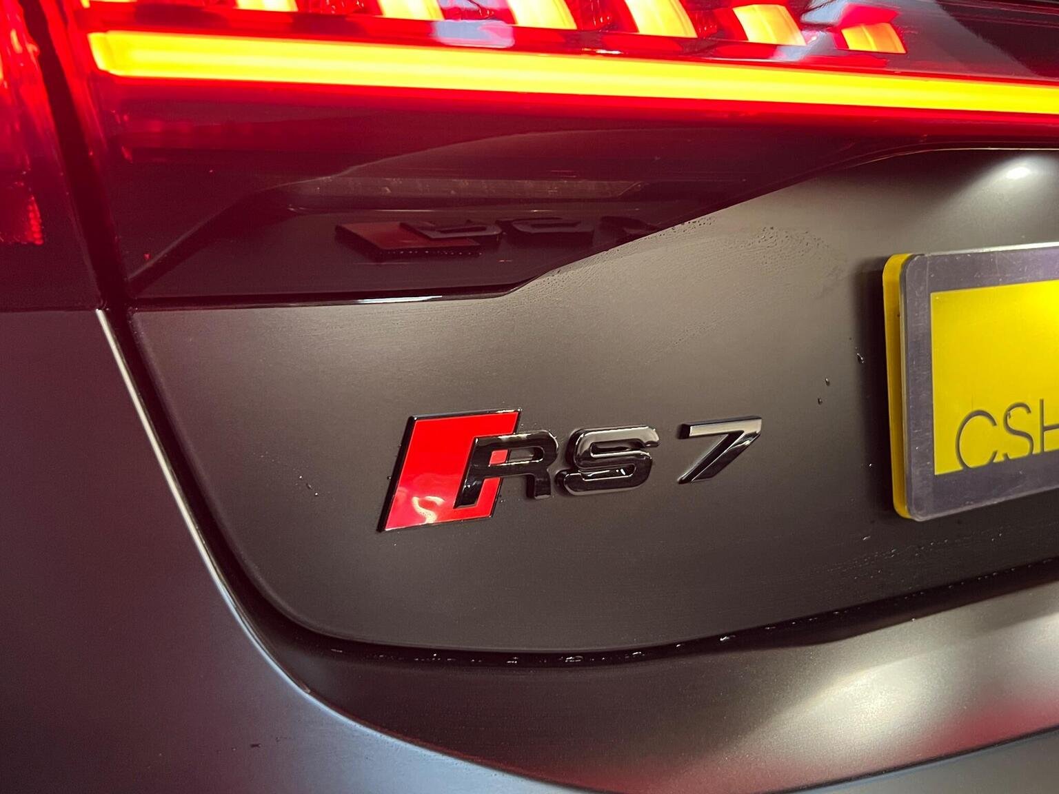 22in Alloy Wheels - 5 Y-Spoke - Matt Black, 2x USB-C Ports with Charging Functionality in the Rear, 3-Spoke Design Multifunction Steering Wheel in Alcantara Leather, 4-Way Electric Lumbar Support, 4-Zone Deluxe Automatic Climate Control, ABS - Anti-Lock Braking System, AMI - Audi Music Interface, Air Quality Package, Airbags - Driver, Ambient Lighting Package Plus, Anti-Theft Alarm with Tow-Away Protection, Audi Connect (3 Year Subscription From New), Audi Connect Safety and Service - e-call, Audi Connect with Amazon Alexa Integration, Audi Drive Select with Two Configurable RS Modes, Audi Smartphone Interface includes Wireless Apple CarPlay and Android Auto, Audi Virtual Cockpit Plus, Auto-Dimming and Frameless Rear View Mirror, Bang and Olufsen Premium Sound System with 3D Sound, Black Audi Rings and Black RS Badges, Black Cloth Headlining, Black Dinamica Headlining, Bluetooth Interface, Camera Based Road Sign Recognition, City Assist Pack, Controls in Alcantara - Black with Contrasting Stitching in Grey, DAB Digital Radio, Direct Tyre Pressure Monitoring System, Door Armrest in Fine Nappa Leather - Black with Contrasting Stitching in Grey, Door Mirrors - Electrically Folding - Adjustable - Auto Dimming and Heated with Memory Function and Integrated LED Side Indicators with Kerb-view Function for Passenger Side, Door Sill Trims - Aluminium Inlays - Front and rear - Illuminated Front with RS7 Logo, Dynamic All-Wheel Steering, Dynamic Steering, Electric Steering Column Adjustment, Electric Windows - Front and Rear, Electrically Adjustable Front Seats with Driver Memory Function, Electro-Mechanical Parking Brake, Entry LED with RS Performance Projection - Front and Rear - Audi Beam, Extended Pedestrian Protection Measures, First Aid Kit with Warning Triangle, Floor Mats - Black with Contrasting Stitching in Grey and RS Logo at Front, Footrest and Pedals in Stainless Steel, Front Centre Armrest, HD Matrix LED Headlamps with Audi Laser Light with Dynamic Light Design and Dynamic Turn Signal, Head-Up Display, Headlight Washers, Heated Front and Rear Seats - Outer Seats Only in Rear, ISOFIX Child Seat Mounting and Top Tether - Front Passenger Airbag Deactivation, ISOFIX and Top Tether Child Seat Mountings for the Outer Rear Seats, Inlays - Carbon Twill with Blue Accent, Instrument Panel and Door Rails in Fine Nappa Leather - Black, Keyless Go, LED Rear Combination Lamps with Dynamic Light Design and Dynamic Turn Signal, Lane Departure Warning, MMI Navigation with MMI Touch - Twin Touch Screens 10.1in and 8.6in with Haptic and Acoustic Feedback, Matt Carbon Black Styling Package, Mirror Housing - Matt Carbon, Night Vision Assistant, Operating Buttons in Black - Glass Look with Haptic Feedback and Extended Aluminium Look, Panoramic Glass Sunroof, Park Assist Pack with Park Assist Plus, Performance Tyres, Power Operated Tailgate, Power-Assisted Door Closing, Privacy Glass for Side and Rear Windows and Acoustic Glazing for Side Windows, RS Specific Bumpers - Front Bumper Air Inlets on Both Sides, RS Sport Exhaust System, RS Sports Seats, RS Sports Suspension Plus, RS Steel Brakes with Black Calipers, Rear Side Airbags, Rear Spoiler - Electrically Extendable Depending on Speed, Rear Window Sunscreen, Seat Belts in Black with Grey Edge, Seat Ventilation for Front Seats, Selector Lever Gaiter in Fine Nappa Leather - Black with Contrasting Stitching in Grey, Side Airbags Front and Rear, Sides of the Centre Console in Alcantara - Black with Contrasting Stitching in Grey, Speed Limiter 174mph, Storage Package, Surround View Cameras, Tour Pack, Voice Control System, Window Trims - Black, quattro with Sports Differential